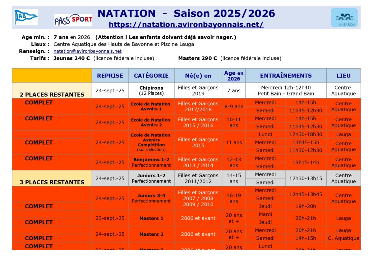 Afin de recevoir le dossier ainsi que toutes les modalités, merci d’envoyer un mail à natation@avironbayonnais.net en précisant le nom, prénom, année de naissance du nageur -se concerné(e).